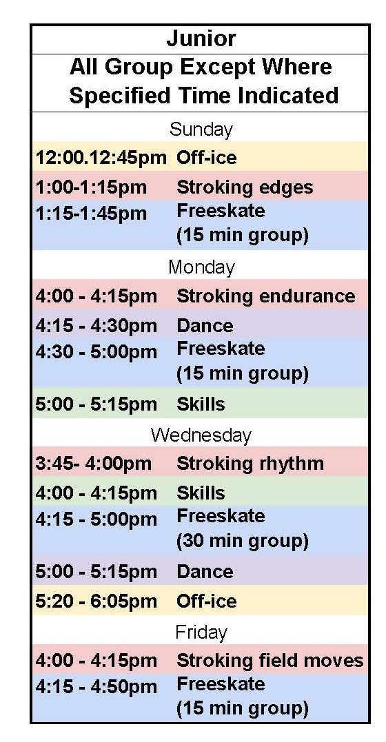 2024 - 2025 Winter JUNIOR STARSKATE Detailed Daily Schedule