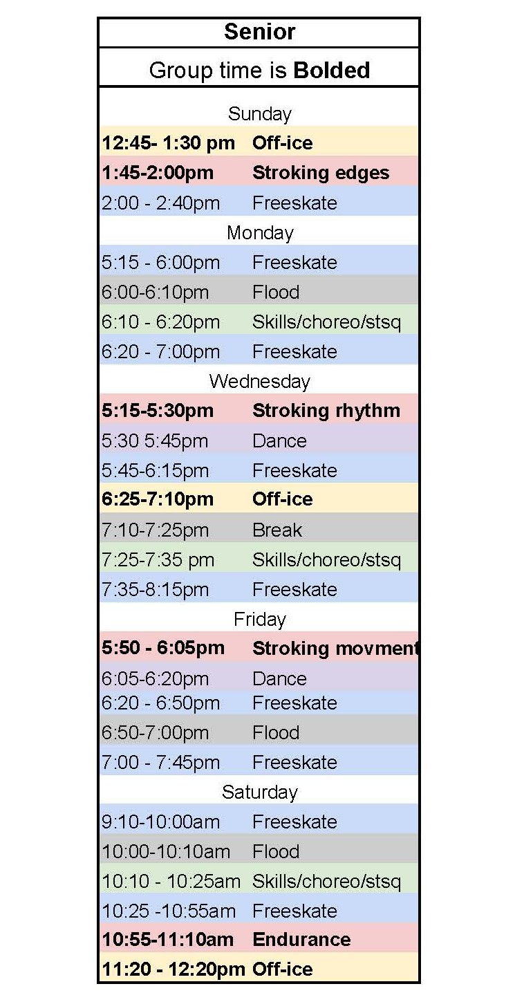 2024 - 2025 Winter SENIOR STARSKATE Detailed Daily Schedule